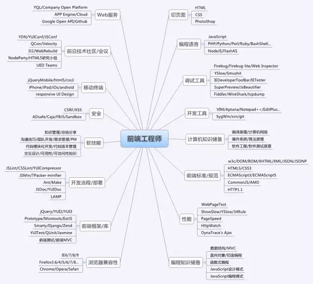环境决定技能,现实影响进步,如果要成为一名资深的前端布道师,要掌握哪些知识结构呢?一张图带你走进前端的世界。(索要前端工具加码大牛QQ2011168841)