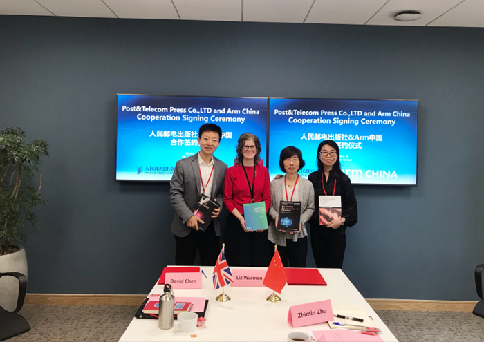 人民邮电出版社与Arm中国战略合作及版权双向合作签约仪式在Arm总部举行。双方将结合教育部产教融合的教育方针,在人工智能、物联网、智能IC、移动互联等专业开展系统、深入的合作,联合众多高校的专家、学者,共同规划并开发符合专业建设和课程建设的体系化教学方案和教学内容(包括教材、PPT、富媒体资源),在此基础上分批次地组织师资培训和实训课程指导,协助高校进行相关专业的体系建设,加强产学合作的广度和深度,提升产学合作协同育人的效果。同步规划的还包括该项目成果走出国门,实现版权输出。出席此次签约仪式的有Arm全球教育高级总监Khaled Benkrid、Arm教育内容与技术总监Liz Warman、Arm中国教育生态部总监陈炜、Arm教育媒体总编辑窦加林,人民邮电出版社监事王晓丹、出版业务管理部主任李际、教育出版中心总经理曾斌、高教分社副社长刘博、高级策划编辑祝智敏等。
