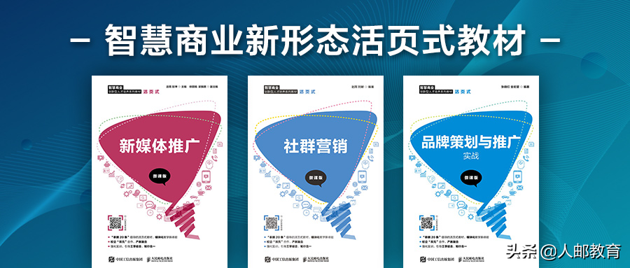 2019年,教育部先后印发《国家职业教育改革实施方案》(职教20条)《关于组织开展“十三五”职业教育国家规划教材建设工作的通知》《职业院校教材管理办法》,明确提出建设一大批校企“双元”合作开发的国家规划教材,倡导使用新型活页式、工作手册式教材并配套开发信息化资源。 为落实教育部文件精神,满足院校需求,人民邮电出版社联合山东商业职业技术学院推出了智慧商业新形态活页式教材,欢迎广大院校教师参考选用!